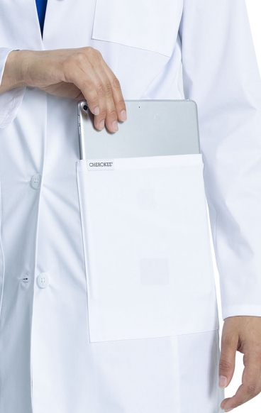 • Hay tres bolsillos: uno en el pecho con un lazo para instrumentos y dos bolsillos delanteros para tablet.