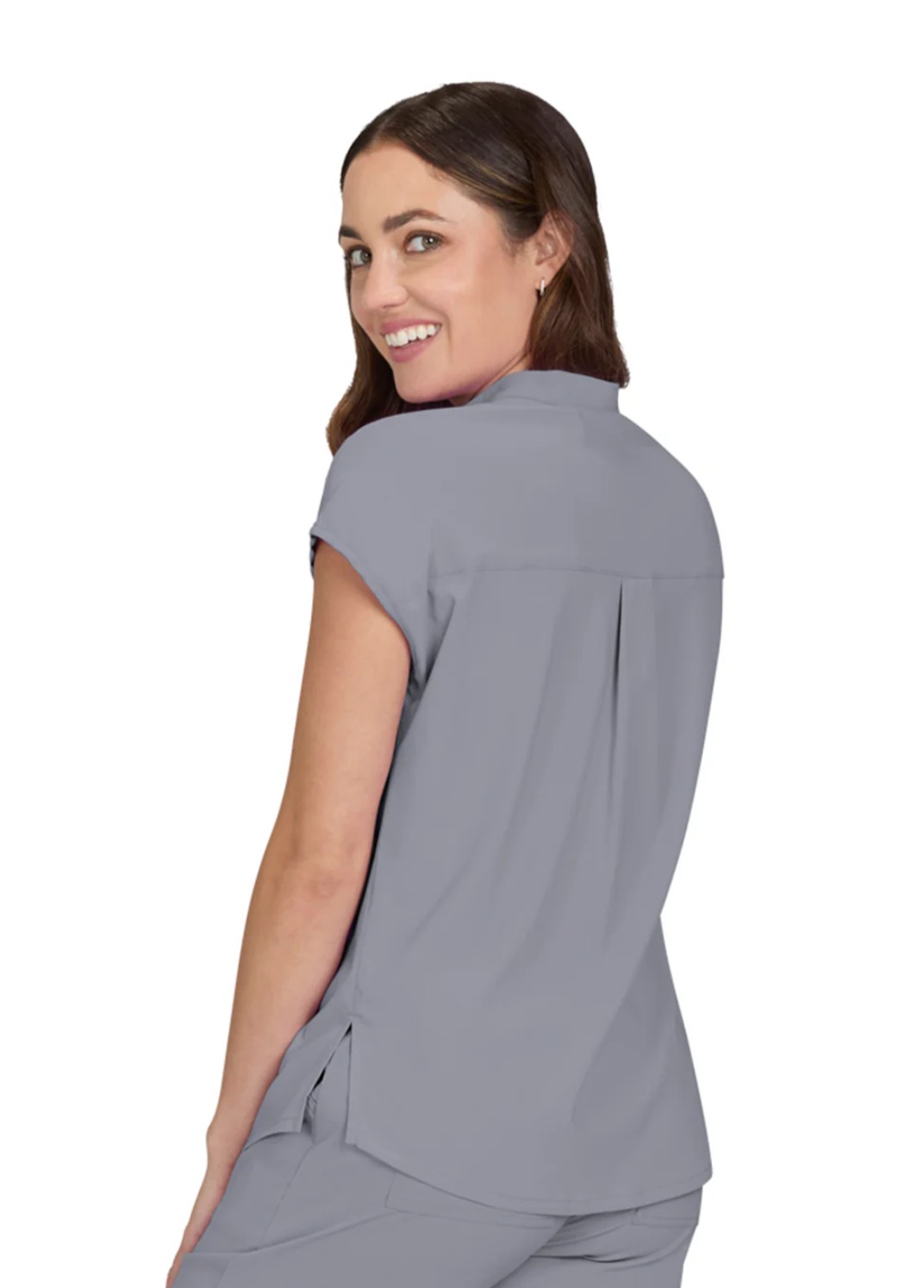 Si buscas una blusa con un estilo premium, ¡la blusa Koi Basics Ari de un bolsillo con cuello mao es la indicada! Su cuerpo amplio te garantiza comodidad durante todo el turno. El cuello mao le da un toque de elegancia a cada turno.