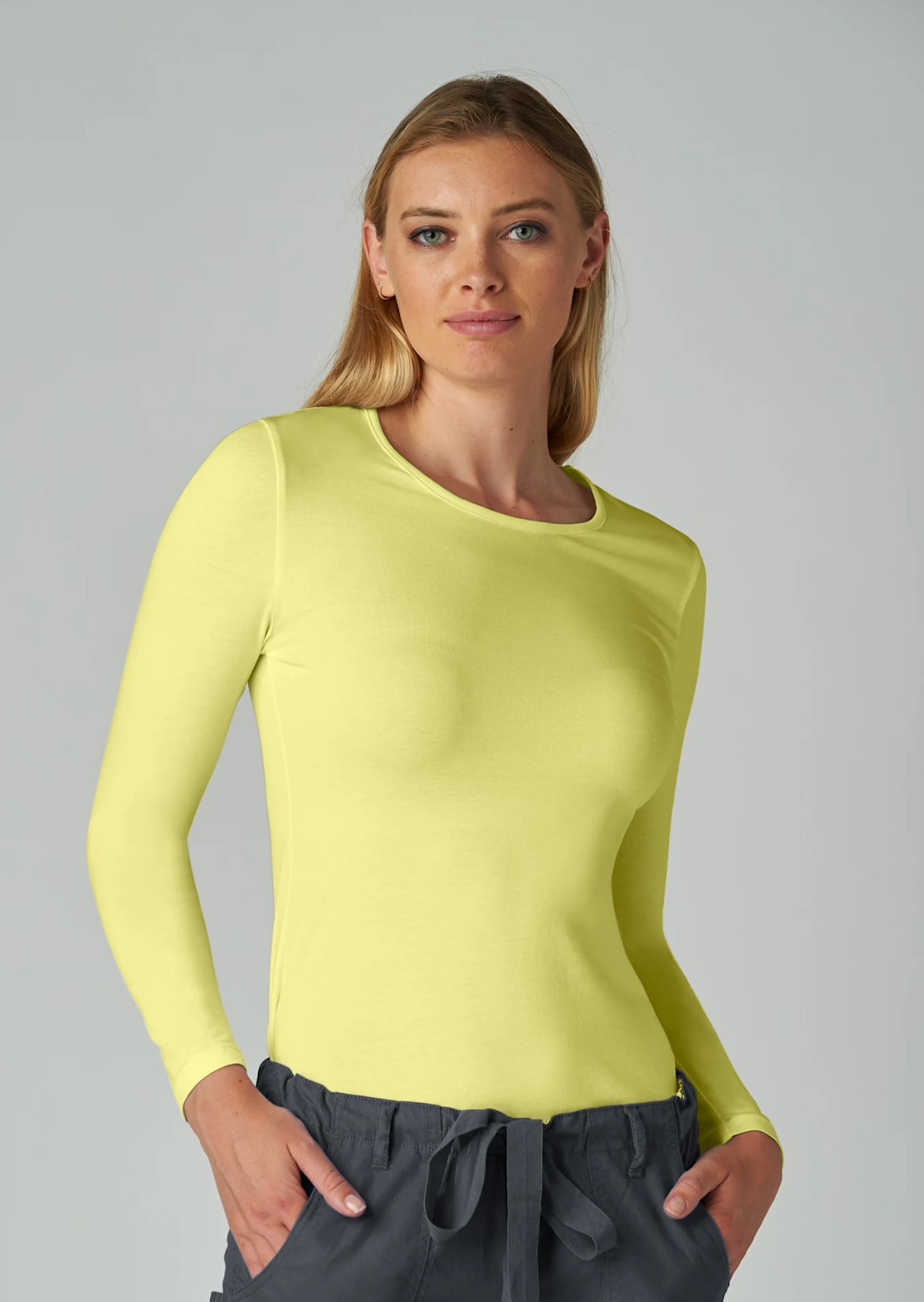 Camiseta de manga larga ultrasuave y transpirable es imprescindible en tu colección. Es tan cómoda que querrás usarla tanto dentro como fuera del trabajo. Escote redondo Ideal para combinar con otras prendas.
