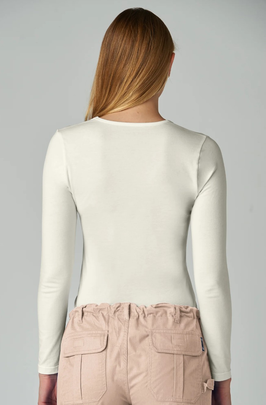 Camiseta de manga larga ultrasuave y transpirable es imprescindible en tu colección. Es tan cómoda que querrás usarla tanto dentro como fuera del trabajo. Escote redondo Ideal para combinar con otras prendas.