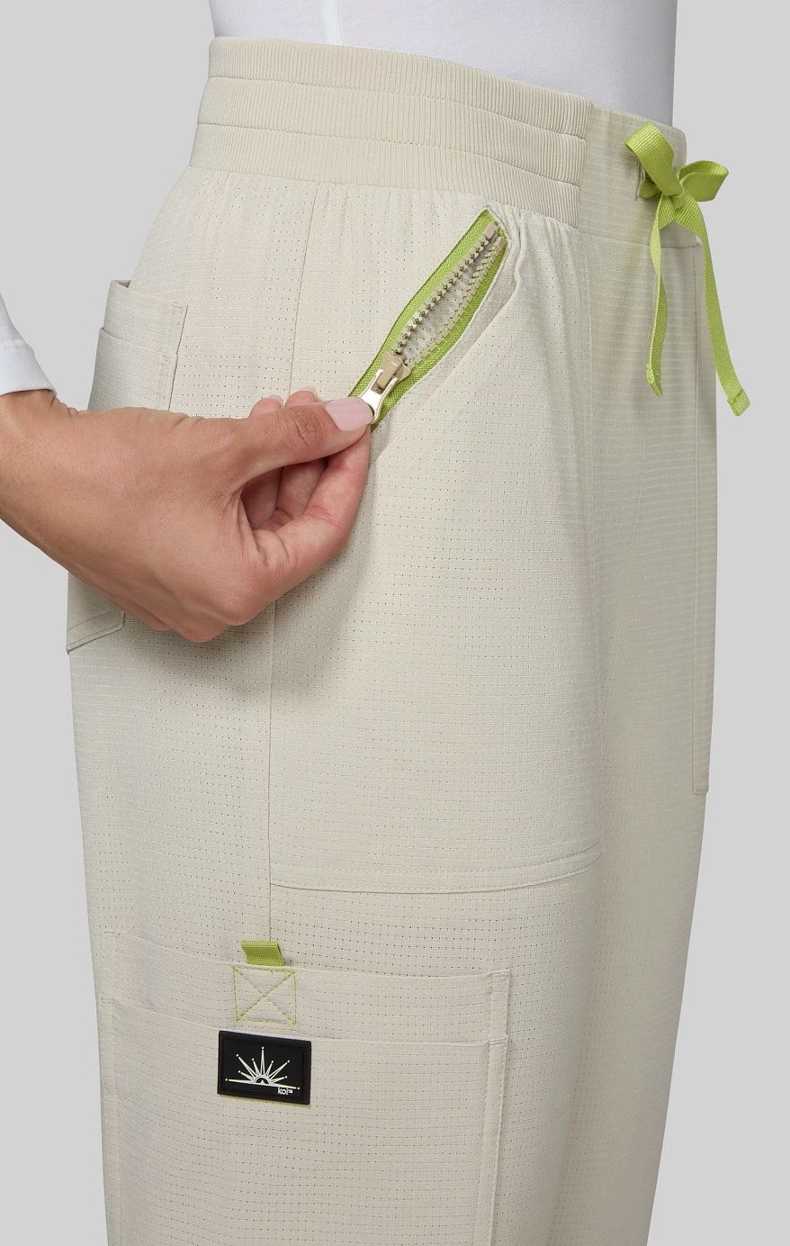 Moderno pantalón médico estilo jogger, confeccionado con tejido elástico antidesgarro ExoFlex™ ultrarresistente y suave como la seda. Corte moderno.