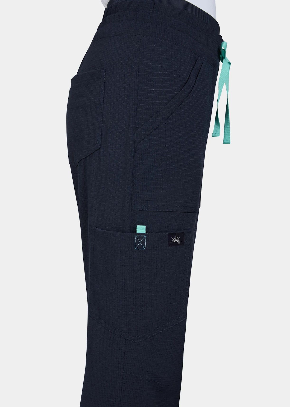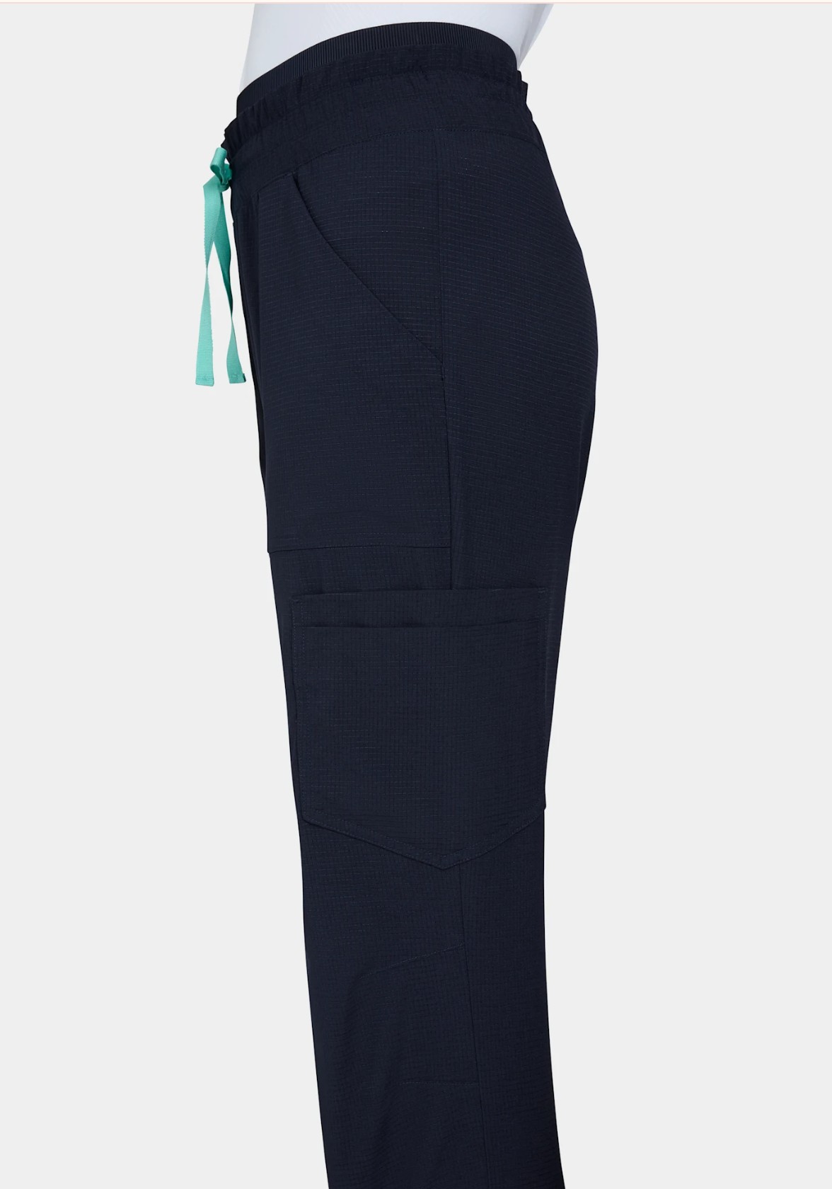 Pantalón médico ultramoderno, holgado y de pierna ancha convertible a jogger, confeccionado con nuestro tejido elástico antidesgarro ExoFlex™ ultrarresistente y suave como la seda. Corte contemporáneo.