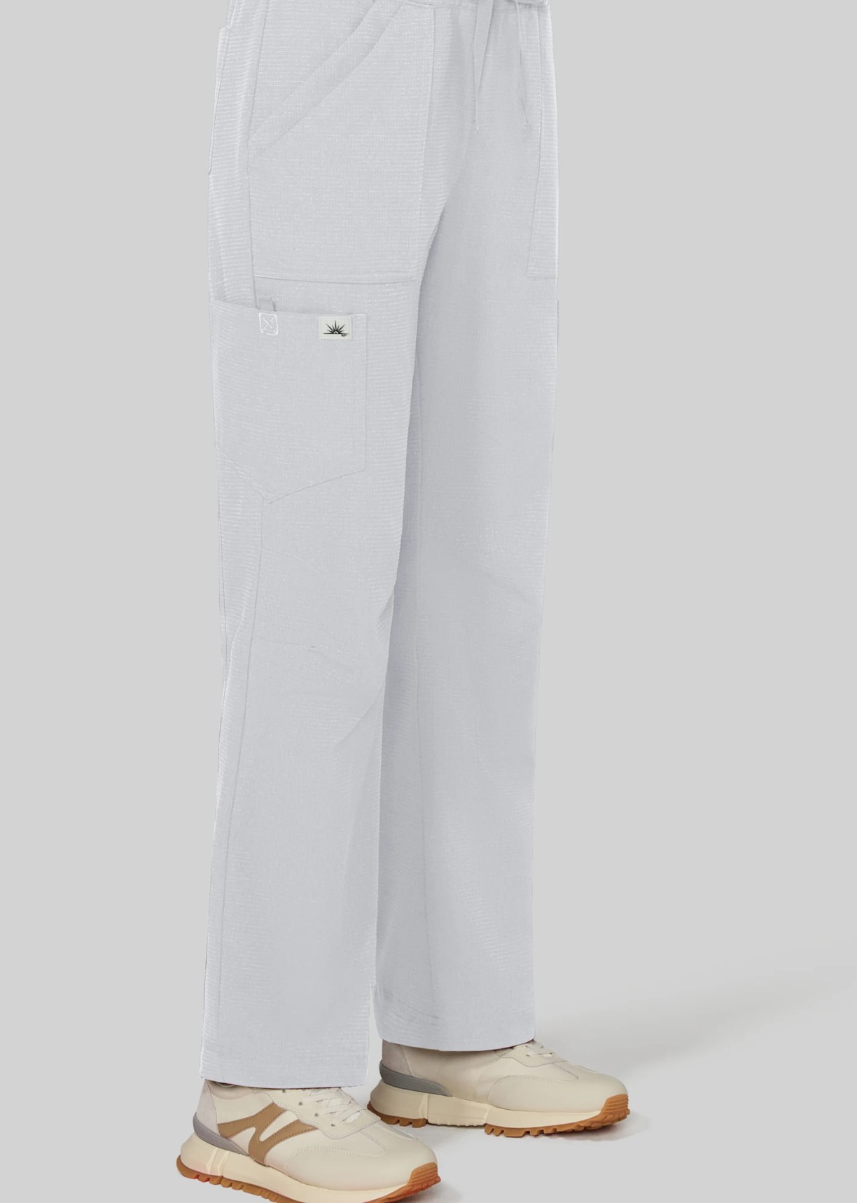 Pantalón médico ultramoderno, holgado y de pierna ancha convertible a jogger, confeccionado con nuestro tejido elástico antidesgarro ExoFlex™ ultrarresistente y suave como la seda. Corte contemporáneo.