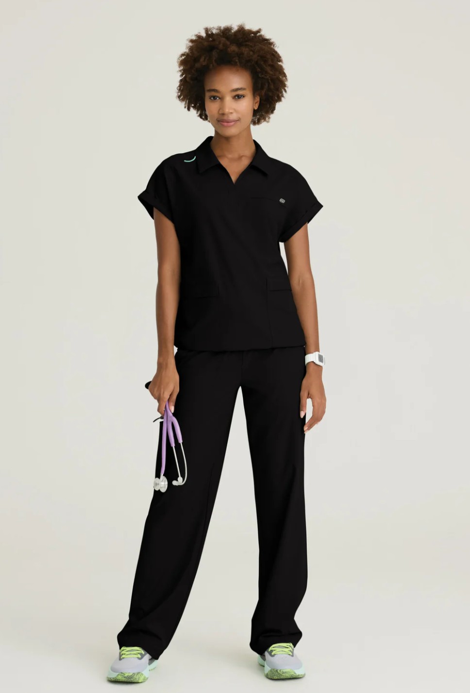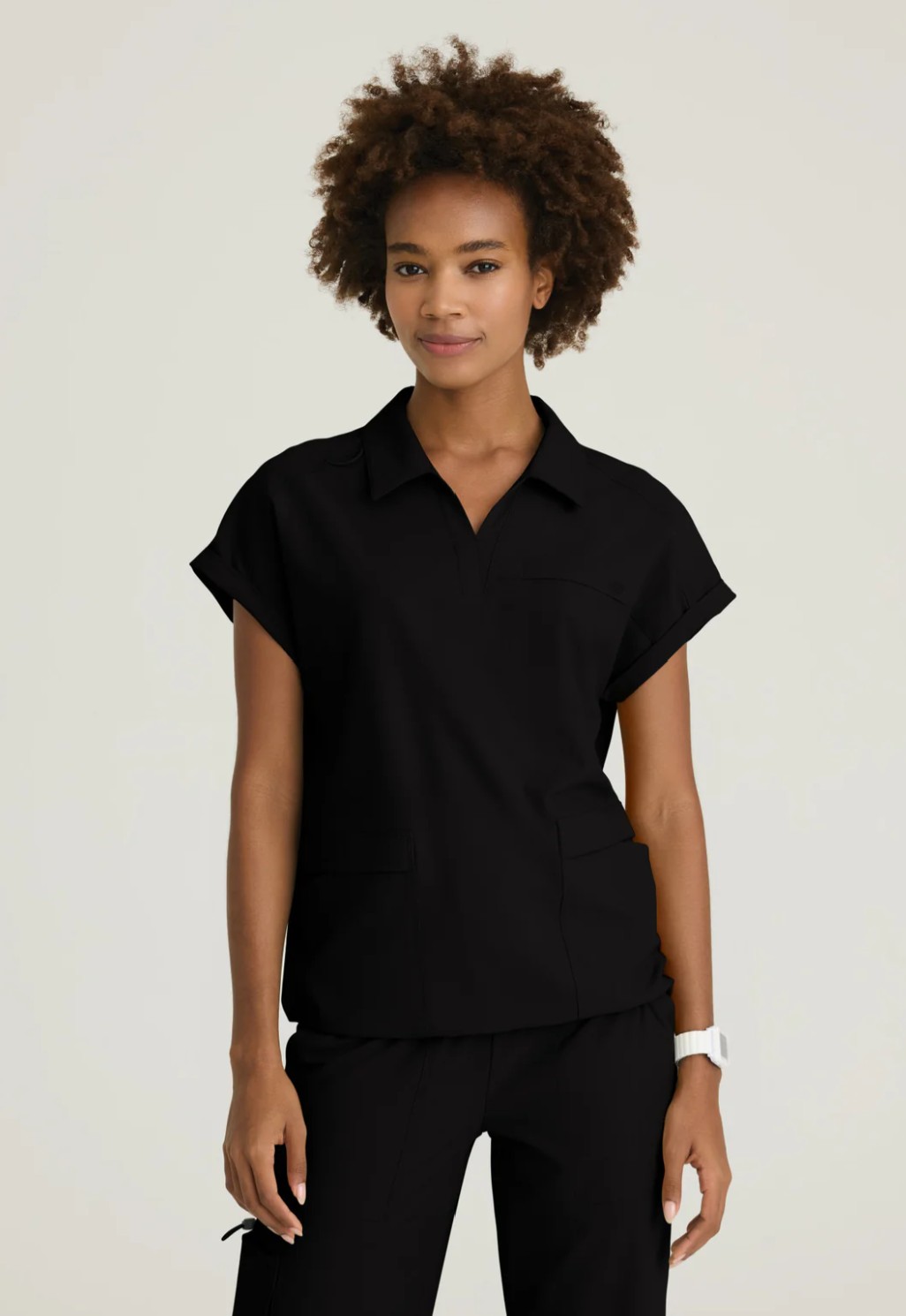 - Escote en V con cuello de camisa